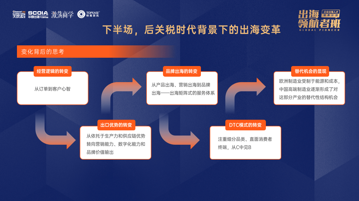 2025 年 7 月,由吴晓波频道取激荡商合从办的 “出海领航者班” 课前课正在杭州举行。做为国内聚焦贸易趋向取企业转型的权势巨子平台,吴晓波频道旗下 “华商出海财产办事联盟” 持久努力于为出海企业供给趋向洞察、资本对接取实和培训,其 “出海领航者班” 系列课程汇聚一线企业家、专家学者,通过 “数据解读 + 案例研讨 + 系统讲课” 模式,帮力企业破解全球化难题。